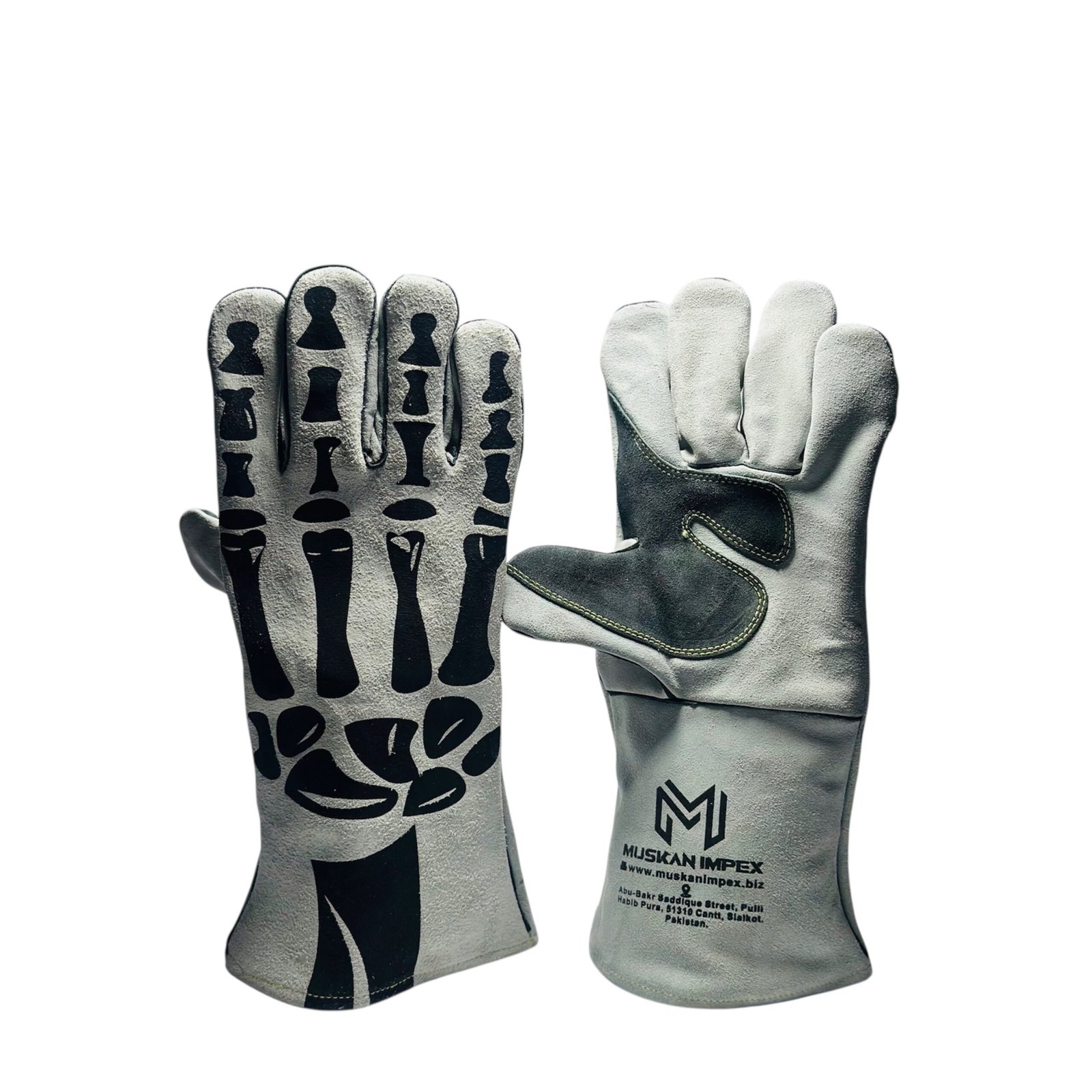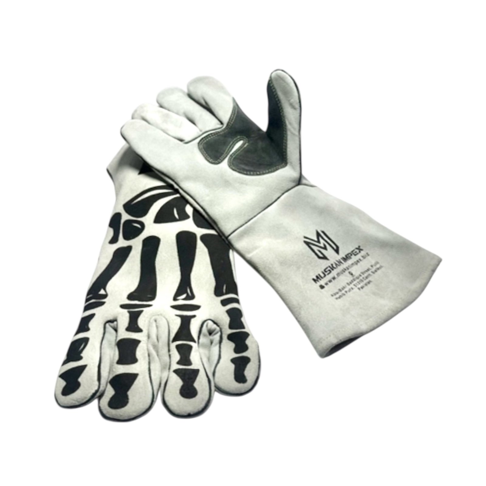 The MI 208 MIG Welding Gloves by Muskan Impex are engineered for maximum protection, comfort, and durability in high-heat environments. Crafted from premium white cowhide split leather, these gloves feature reinforced black cowhide split leather palms for enhanced grip and abrasion resistance in high-wear zones.
