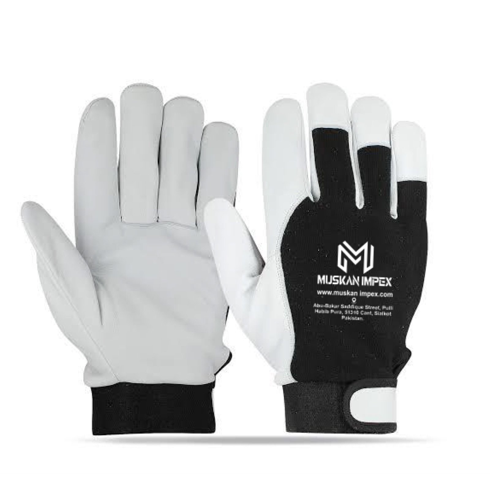 Crafted from premium white goatskin leather, the MI 98 Mechanic Gloves offer exceptional dexterity and durability. Featuring a soft black polyester lining and secure Velcro® closure for a comfortable, snug fit. Available in all sizes with custom logo and design options.
