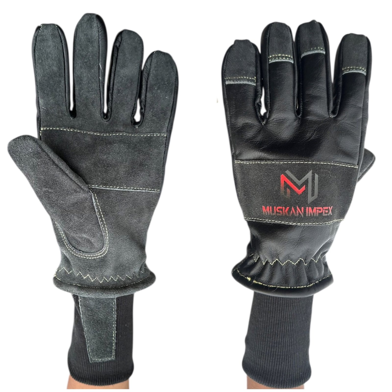 The Muskan Impex Winter Glove 223 is built to keep your hands warm, comfortable, and protected in the harshest winter conditions. Crafted with black cowhide split leather on the backside for durability and soft goat skin leather on the palm for superior grip and flexibility, these gloves deliver both performance and comfort.