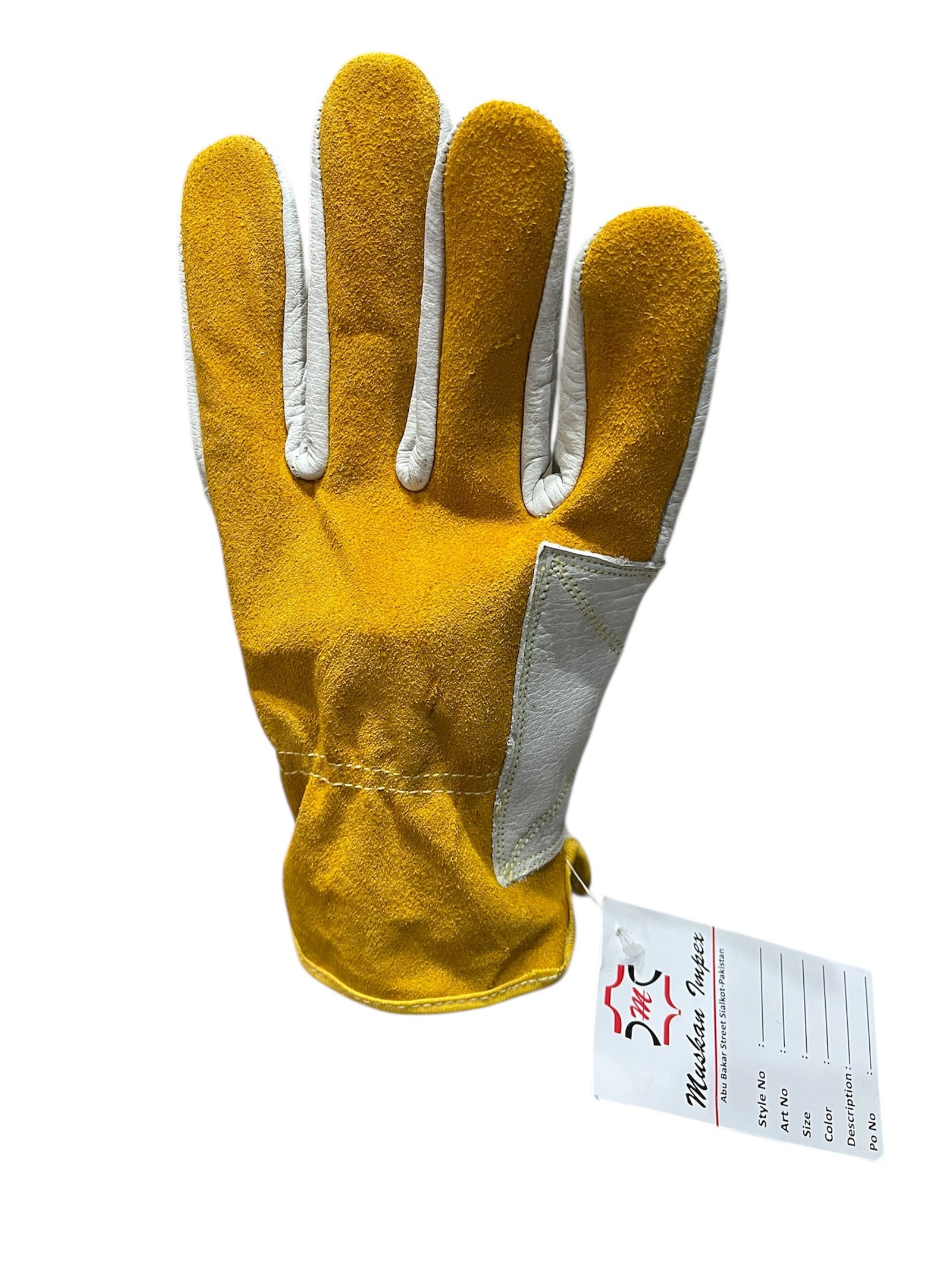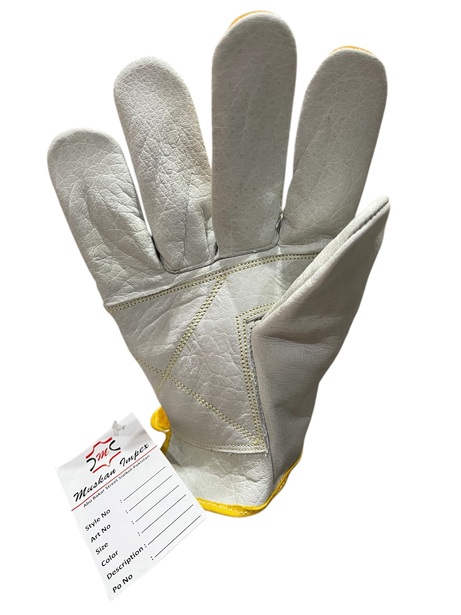 Crafted for durability, comfort, and protection, our premium driving gloves feature a white grain goat skin leather front paired with a yellow cowhide split leather back and palms for superior grip and abrasion resistance. Reinforced with Kevlar stitching, these gloves ensure long-lasting performance even under demanding conditions.